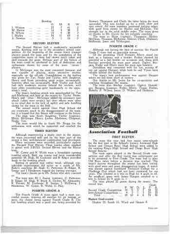 The team again played in the Second Grade com petition and after the rst round was unfortunate not to be promoted to First Grade. The team had to play Old Boys twice before a decision was reached. The team's success throughout the season has been varied, with good wins and some disap ointing losses. A match was played against Suothland Technical College for a Challenge Cup which had not been contested for six years. This resulted in a win to High by 4 goals to nil. An uno cial game with James Hargest resulted in a win to School by 8 goals to I.