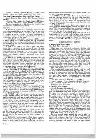 C. WARD (left-wing): Chris was played as an inside forward before proving himself of value on the wing. With his speed and keenness to train, he produced better football as the season progressed and was pro• minent in the last three inter-schools.