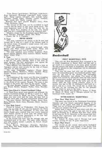 School took a long time to settle down and after ten minutes were down 7-8, and it was only due to some good set-shooting by J. Morgan that they were ahead at half time by 21-13. However, in the second half they showed their superiority and raced away with some good o ensive play.