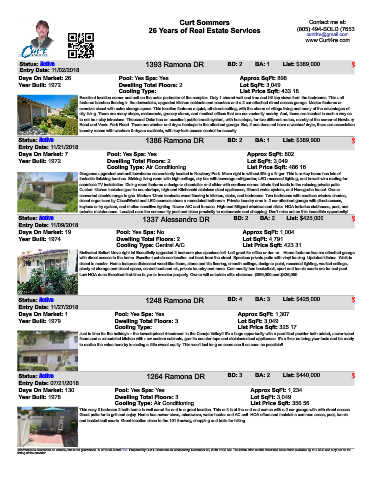 Status: Active 1337 Alessandro DR BD: 2 BA: 2 List: $425,000 $