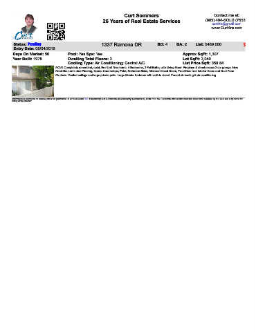 Status: Pending 1337 Ramona DR BD: 4 BA: 2 List: $469,000 $