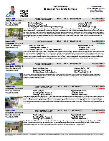 Status: Sold 1197 RAMONA DR BD: 3 BA: 2 List: $455,000 Sold: 08/20/2018