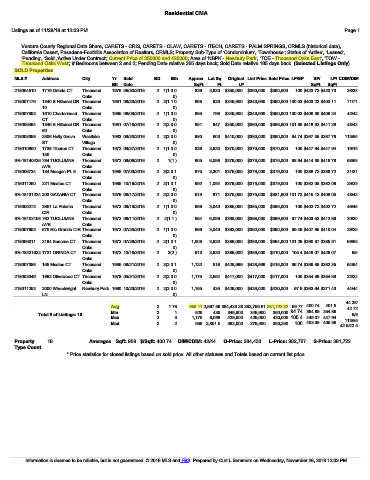 218011252 2000 Wheelwright Newbury Park 1980 10/23/2018 2 2(2 0 0 1,155 435 $429,000 $429,000 $420,000 97.9 $363.64 $371.43 44/44