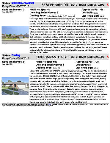 Status: Pending 2680 SAMANTHA CT BD: 3 BA: 2 List: $599,999 $