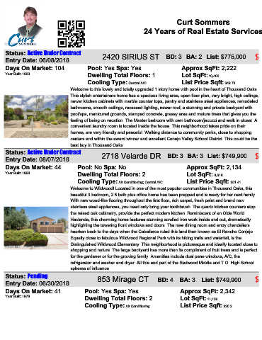 Status: Pending 853 Mirage CT BD: 4 BA: 3 List: $749,900 $