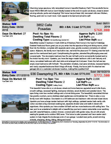 Entry Date: 07/12/2018 936 Deerspring PL BD: 4 BA: 3 List: $775,000 $772,500