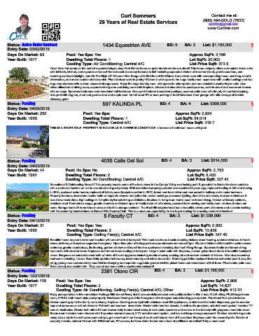 Status: Pending 4035 Calle Del Sol BD: 4 BA: 3 List: $914,500 $