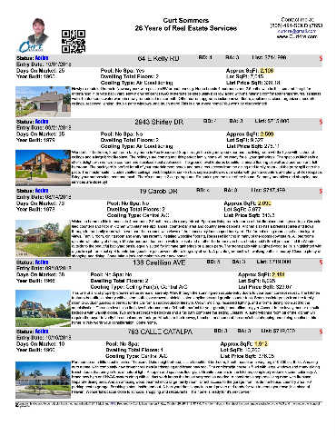 lnforma~on is deemed to be reliable, but is not guaranteed.© 2018 MLS and FBS. Prepared by Curt L Sommers on Friday, October 26, 201812:37 PM. The infonnation on this sheet has been made available by the MLS and may not be the listing of