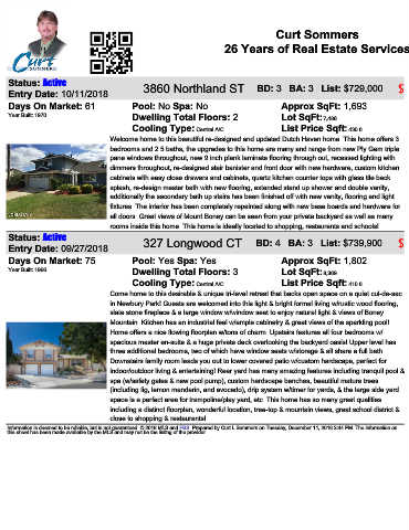 Status: Active 3860 Northland ST BD: 3 BA: 3 List: $729,000 $