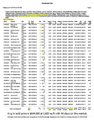 218010288 408 San Vincente Newbury 1970 09/18/2018 3 2(2 0 0 1,436 4,720 $614,900 $614,900 $617,000 100.34 $429.67 $428.2 23/23