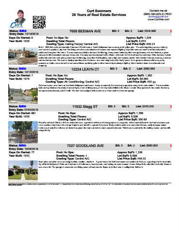Status: Active 7669 BEEMAN AVE BD: 3 BA: 2 List: $549,900 $
