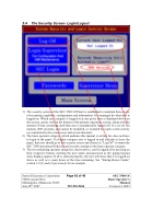 1) The security system of the SEC 3500 OI Panel is established to maintain three levels of increasing capability, configuration and information. It is managed by what user is logged on. Which user category is logged in at any given time is displayed above on this screen, and as well on the bottom of the primary operation screens, along with the amount of time remaining until that user is automatically logged off. It is set for ten minutes (600 seconds), and cannot be modified, or restarted by touch screen activity (as contrasted by the screen saver and screen timeouts).