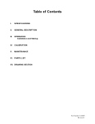 Table of Contents I. SPECIFICATIONS II. GENERAL DESCRIPTION III. OPERATION Installation and Startup IV. CALIBRATION V. MAINTENANCE VI. PARTS LIST VII. DRAWING SECTION Part Number 1460005 Revision C