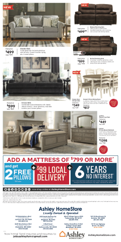 Although every precaution is taken, errors in price and/or specification may occur. We reserve the right to correct any such errors. Prices and offers valid for a limited time at participating locations only. Participation times may vary. Prices or offers may vary in Hawaii and Alaska. Ashley HomeStores are independently owned and operated. ©2019 Ashley HomeStore, Ltd. Expires 2/25/19 at 11:59pm EST.