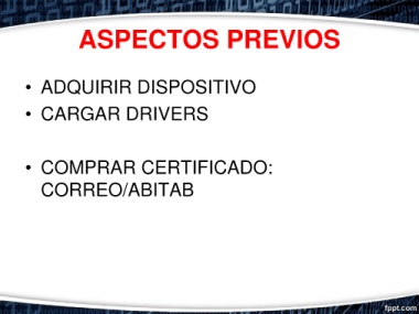 ASPECTOS PREVIOS • ADQUIRIR DISPOSITIVO • CARGAR DRIVERS • COMPRAR CERTIFICADO: CORREO/ABITAB