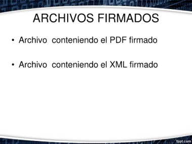 ARCHIVOS FIRMADOS • Archivo conteniendo el PDF firmado • Archivo conteniendo el XML firmado