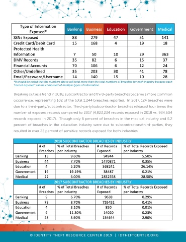 *It should be noted that the numbers above will total more than the total numbers of breaches for each industry because each