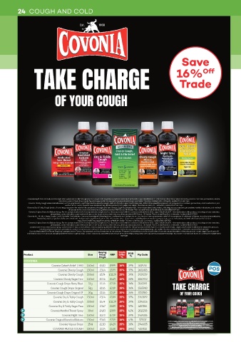 Covonia Vapour Drops 15ml £2.20 £4.29 15% 38% 2946655 Covonia ALL-IN-ONE Chesty Cough, Cold & Flu Relief Oral Solution, Contains Paracetamol, Phenylephrine, Guaifenesin and Cetylpyridiurm. For the short term symptomatic relief of the symptoms of colds and influenza, including aches and