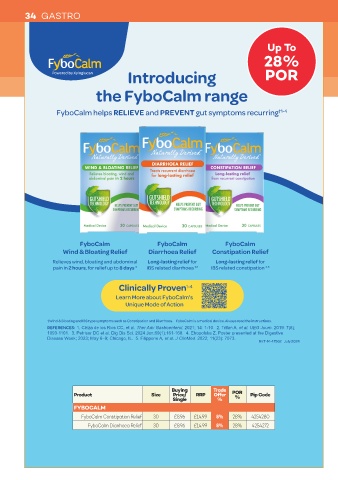 †Wind & Bloating and IBS type symptoms such as Constipation and Diarrhoea. FyboCalm is a medical device. Always read the instructions.