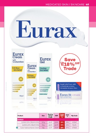 EURAX 10% CREAM 30G 30g £2.65 £4.99 15% 36% 94474