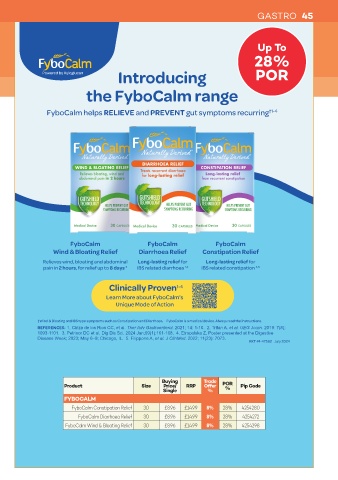 †Wind & Bloating and IBS type symptoms such as Constipation and Diarrhoea. FyboCalm is a medical device. Always read the instructions.