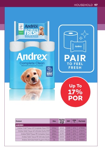 Andrex Toilet Tissue 4R Complete Clean PMP 190sc £2.12 £2.99 15% 6778765