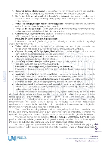 moslashtirilgan ta’lim dasturlari ishlab chiqilishi mumkin. Masalan, Smart Learning, 356