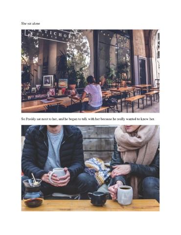 She sat alone So Freddy sat next to her, and he began to talk with her because he really wanted to know her.