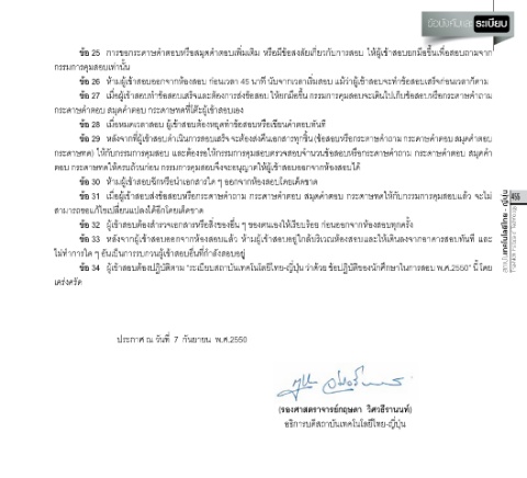 ข้อ 31 เมื่อผู้เข้าสอบส่งข้อสอบหรือกระดาษค�าถาม กระดาษค�าตอบ สมุดค�าตอบ กระดาษทดให้กับกรรมการคุมสอบแล้ว จะไม่ 455