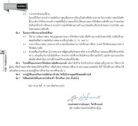 ทราบ พร้อมทั้งแจ้งงานวินัยนักศึกษา ฝ่ายกิจการนักศึกษาให้บันทึกประวัติการทุจริตไว้ และพิจารณาบทลงโทษ