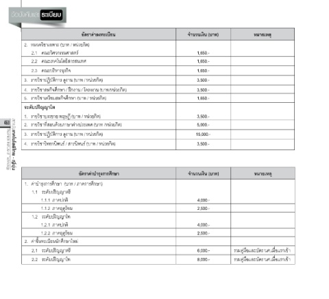 4. รายวิชาวิทยานิพนธ์ / สารนิพนธ์ (บาท / หน่วยกิต) 3,500.-