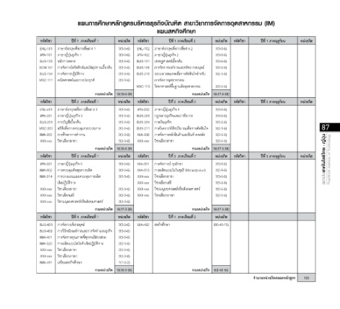 แผนการศึกษาหลักสูตรบริหารธุรกิจบัณฑิต สาขาวิชาการจัดการอุตสาหกรรม (IM)