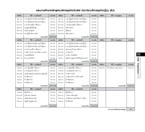 แผนการศึกษาหลักสูตรบริหารธุรกิจบัณฑิต สาขาวิชาบริหารธุรกิจญี่ปุ่น (BJ)