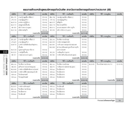 แผนการศึกษาหลักสูตรบริหารธุรกิจบัณฑิต สาขาวิชาการจัดการธุรกิจระหว่างประเทศ (IB)