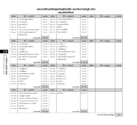 แผนการศึกษาหลักสูตรบัญชีบัณฑิต สาขาวิชาการบัญชี (AC)