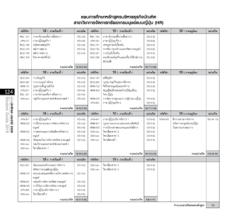124 JPN-201 ภาษาญี่ปุ่นธุรกิจ 3 3(3-0-6) HRM-305 ทฤษฎีพฤติกรรมองค์กรเปรียบเทียบ 3(3-0-6)