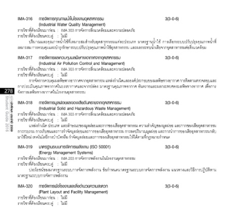 IMA-316 การจัดการคุณภาพน�้าในโรงงานอุตสาหกรรม 3(3-0-6)