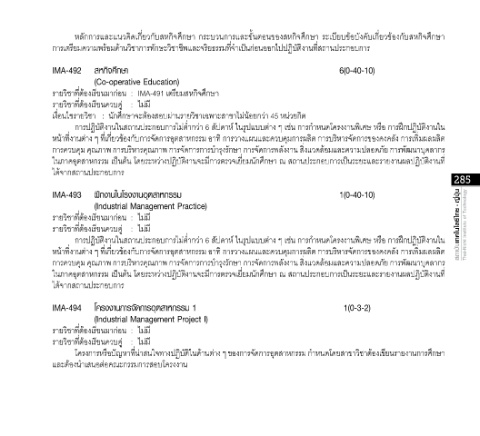 โครงการหรือปัญหาที่น่าสนใจทางปฏิบัติในด้านต่าง ๆ ของการจัดการอุตสาหกรรม ก�าหนดโดยสาขาวิชาต้องเขียนรายงานการศึกษา