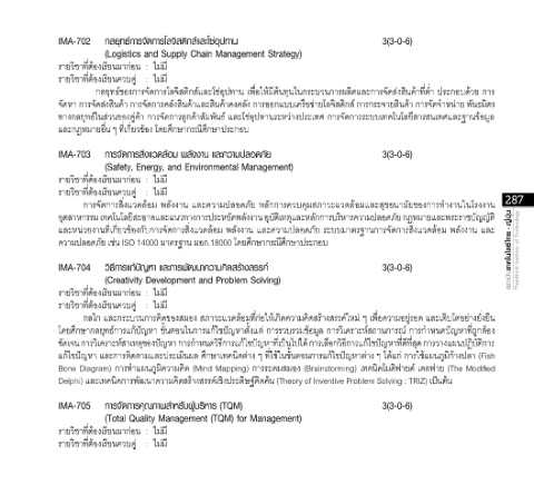 IMA-705 การจัดการคุณภาพส�าหรับผู้บริหาร (TQM) 3(3-0-6)