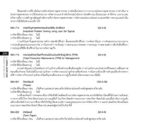 290 IMA-715 การบ�ารุงรักษาทวีผลที่ทุกคนมีส่วนร่วมส�าหรับผู้บริหาร (TPM) 3(3-0-6)