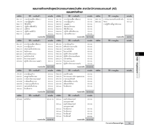 แผนการศึกษาหลักสูตรวิศวกรรมศาสตรบัณฑิต สาขาวิชาวิศวกรรมยานยนต์ (AE)