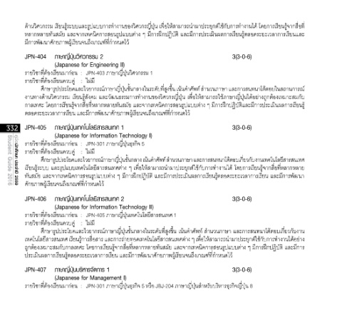332 JPN-405 ภาษาญี่ปุ่นเทคโนโลยีสารสนเทศ 1 3(3-0-6)
