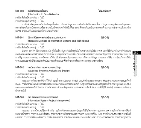 สารสนเทศและวิทยาการสารสนเทศ รายวิชานี้ครอบคลุมเนื้อหาของระเบียบวิธีการวิจัย (รวมถึง การก�าหนดปัญหาวิจัย การทบทวนวรรณกรรม 359