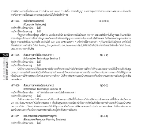 360 MIT-605 สัมมนาทางเทคโนโลยีสารสนเทศ 1 1(0-3-2)