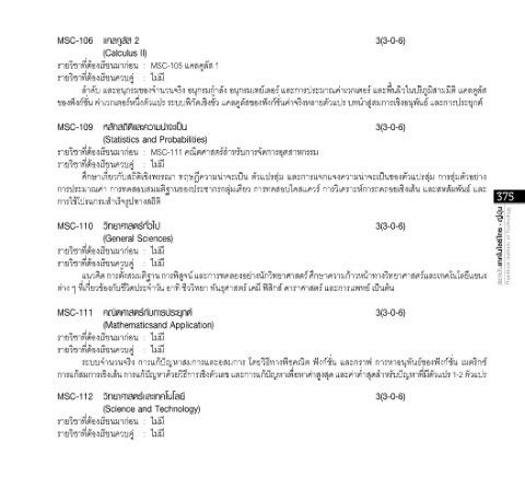 รายวิชาที่ต้องเรียนมาก่อน : MSC-105 แคลคูลัส 1