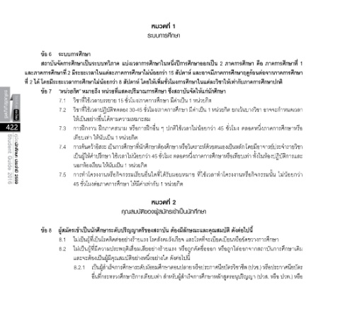 422 7.3 การฝึกงาน ฝึกภาคสนาม หรือการฝึกอื่น ๆ ปกติใช้เวลาไม่น้อยกว่า 45 ชั่วโมง ตลอดหนึ่งภาคการศึกษาหรือ