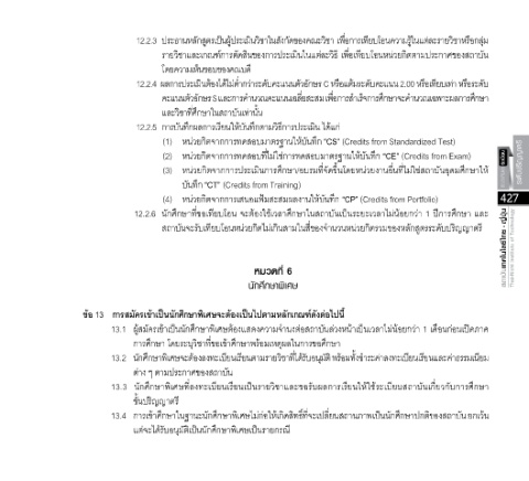 (4) หน่วยกิตจากการเสนอแฟ้มสะสมผลงานให้บันทึก “CP” (Credits from Portfolio) 427