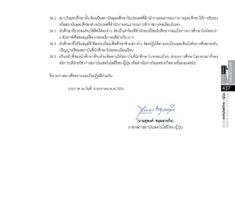 38.5 เป็นหน้าที่ของนักศึกษาที่จะต้องติดตามให้สถาบันที่นักศึกษาไปลงทะเบียน ส่งผลการศึกษาโดยตรงมาที่รอง ขอบังคับและ ระเบียบ