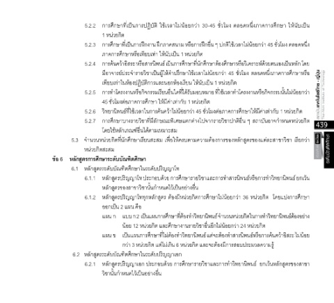 5.2.3 การศึกษาที่เป็นการฝึกงาน ฝึกภาคสนาม หรือการฝึกอื่น ๆ ปกติใช้เวลาไม่น้อยกว่า 45 ชั่วโมง ตลอดหนึ่ง