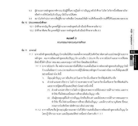 9.3 ผู้อ�านวยการหลักสูตรอาจพิจารณารับผู้มีพื้นความรู้ไม่ต�่ากว่าปริญญาตรี เข้าศึกษาในวิชาใดวิชาหนึ่งหรือหลายวิชา
